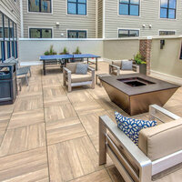 Tile Tech 2424 porcelain pavers in Pennsylvania Bluestone crown the pool deck with rustic look transforming it into.